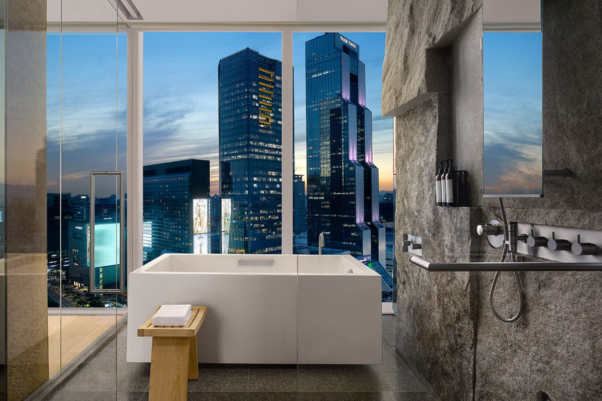 Situated in Gangnam—Seoul’s beacon of luxury—the hotel stands out for its 24-storey glass tower that glistens amidst the cityscape. Upon arrival at Incheon Airport, you may opt for the hotel’s private limousines or take advantage of the hotel’s exclusive air taxi services for the utmost discretion.