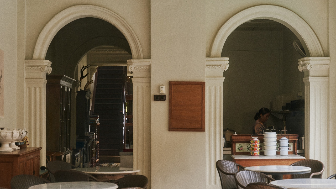 “Before this was a hotel, it was actually owned by six different families. The mews were hand-cart stables and these were parked at on the bottom floors, with the families staying upstairs. The hooks on the columns, which are still here today, were originally used to park the stables,” said Noordin Mews’ group general manager Belinda Boey.
