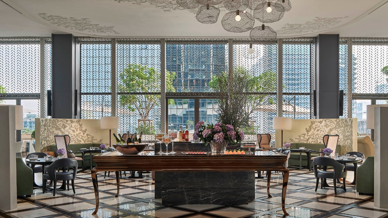 If you decide to dine within the hotel, Nan Bei, the Chinese restaurant known in town for its roasted ducks, is a well-considered venue to impress guests and to seal deals. The space’s adventurous retro-meets-new-classic design and sultry lighting is the perfect canvas in which to tuck into flavoursome salted egg prawns, pickled cucumber, and noodles that seemingly originate from some of Beijing’s top tables.