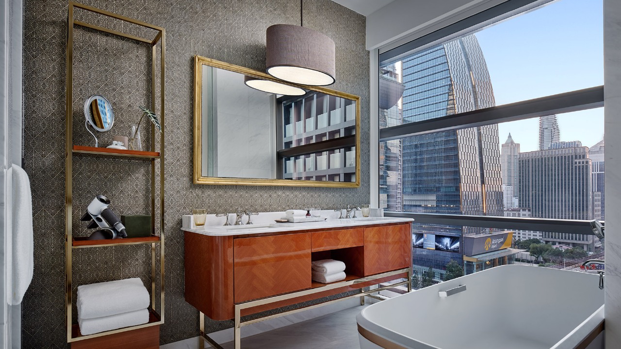 Bathrooms, however, go the classical route with marble countertops and flooring, as well as tubs to luxuriate in. Amenities include supersonic Dyson hairdryers that, once experienced, might make one never want to go back to conventional devices.