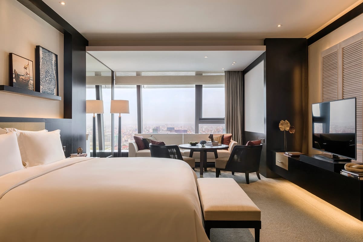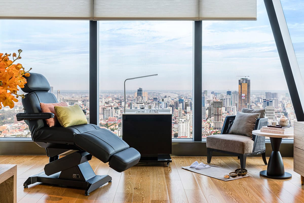 The city is transforming at a startling pace; today’s iteration is unrecognisable from that of a decade ago, and a different version will certainly exist in five years’ time. There is a palpable energy here, a buzz that vibrates from the packed local coffee bars to the countless new building developments in and around the city. The latest of these is the Techo International Airport, a monumental project located 24km from the city centre. In this landscape of ambition, the Rosewood Phnom Penh, occupying the higher floors of the Vattanac Capital Tower, introduces a convincing element of ultra-luxury to a city that’s clearly dressing for the job it wants.
