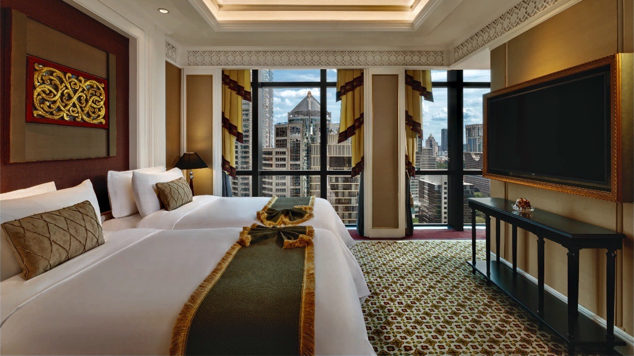 To honour its royal connections, the hotel’s interiors are adorned in European designs blended with Thai influences, a style that the princess favoured. A grand chandelier and sweeping staircase welcome you at the entrance, while the space is complemented by marble accents for a touch of classical elegance. The place is further enriched by an emblematic colour palette of jewel hues and Thai motifs subtly incorporated throughout, beautifully merging Eastern and Western elements.