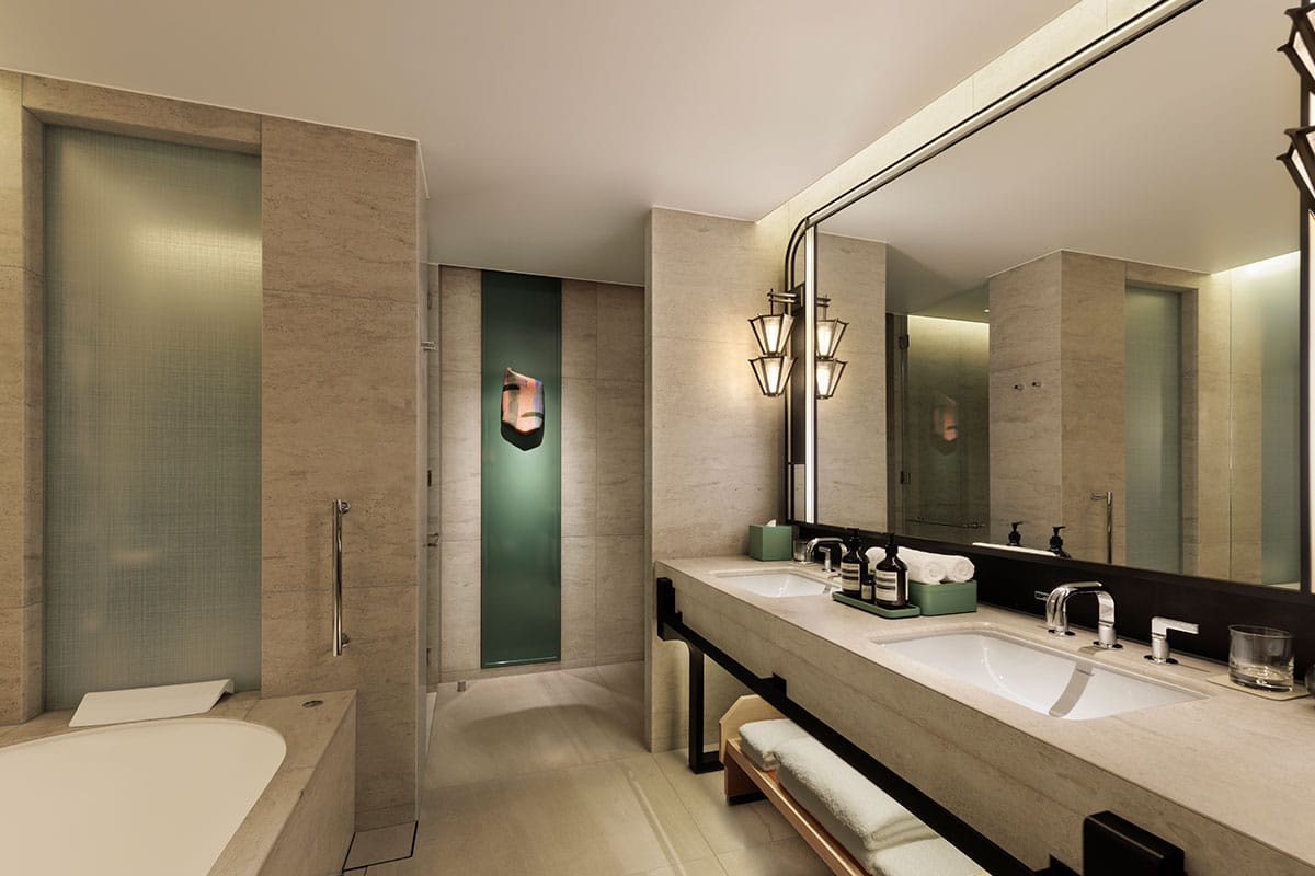 “What sets the hotel apart is its design, and how it matches a sense of purpose and place with the services and experience of a Waldorf Astoria,” says Alan Watts, president, Asia Pacific, Hilton. “André Fu is one of the most sophisticated designers around. His ability to bring to life a truly authentic mid-century modern interpretation of the Waldorf Astoria and then blend it with a sense of place in Osaka has just been amazing.”