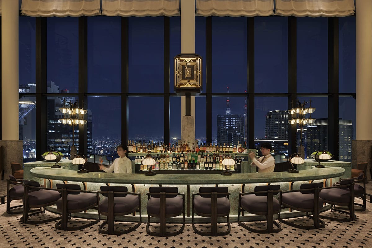 That authenticity is most salient in the Waldorf Astoria Osaka’s Peacock Alley, one of its four exceptional F&B offerings. Its iconic clock is above the bar, which is right in the heart of the space (and might very well be the proverbial heart of the hotel). To get to their reserved seats, guests descend a grand double staircase and, once seated, have even grander floor-to-ceiling double-storey views of Osaka beyond. While the sun is up, they’re savouring its archetypal Afternoon Tea; after the sun sets, those same guests are likely switching to the Rob Roy cocktail, invented in 1894 at (you guessed it) the original Waldorf Astoria New York—but now made with superb Japanese whisky.