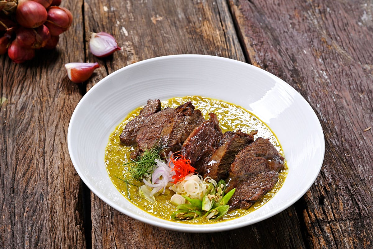 At Celadon, the tranquil Thai restaurant within The Sukhothai Bangkok, head chef Chapornpat ‘Jib’ Dapachutisan is reinterpreting the food of her native Southern Thailand. A graduate of Le Cordon Bleu, she applies classical French techniques to a Thai menu focused on seasonal ingredients and sustainable sourcing. Her approach is evident in the specifics. A rare Kaeng Ra-Waeng curry, with origins in the reign of King Rama V, is made with beef cheek braised for more than 12 hours. Pandanus dumplings, tinted green with leaves from the restaurant’s garden, are filled with native mushrooms and topped with steamed Andaman blue crab. Elsewhere, a duck leg prepared using the French confit method is served in a potent Southern Thai red curry. Each dish is presented on the restaurant’s eponymous, green-glazed stoneware, connecting a specific Thai tradition to the present moment.