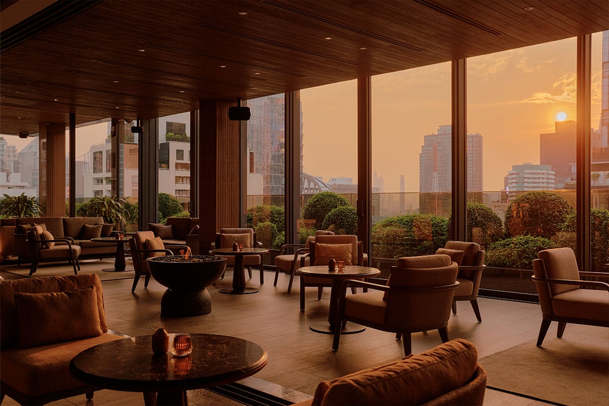 Adjacent to Hiori is the Aman Club, only the third of its kind globally, and is accessible exclusively to hotel guests and Aman Residence owners. Here, Michele Montauti, a familiar face in Bangkok’s bar scene and the hotel’s Director of Beverage and Bars, excels at his usual night job—pairing cocktails to accompany what is arguably the star of the show here: the cityscape beyond and the shimmering light forms of buildings far and near. A charming, unexpected detail within the Aman Club: the gentle, flickering glow of electric fireplaces, a touch one might associate more with a snowy ski resort than a tropical city, which adds an element of cosy intrigue.