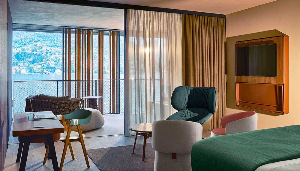 This is Lake Como though, and time spent indoors is time not spent lakeside. Plush couches and nest chairs in ivory and wood tones line the main terrace, with perfect panoramic views of the lake backdropped with a vertical garden created by Patrick Blanc, Le Mirroir Vert du Lac (The Lake’s Green Mirror), made of 2,000 plants of 130 species. At the water’s edge, Il Sereno’s two motorboats await those fancying zipping on the water, designed by Urquiola and crafted by the boatbuilding experts at the 250-year-old Cantiere Ernesto Riva. Speed up and down the lake with the wind in your hair, just as all the other glitterati are. Is there a better way to enjoy a European summer? We think not.