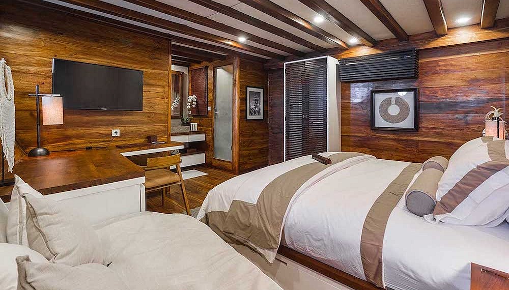 That said, it’s likely you won’t be spending too much time cooped up in your stateroom. Days start with sun salutations or meditation on the top deck, and after alfresco breakfasts, you can settle into one of the king-size sun loungers that dot Prana, each a perfect perch for watching waters of the Coral Triangle slip by before the ship moors for the day’s adventure. If you embark from May to October, expect to explore the wild Komodo National Park, a UNESCO World Heritage reserve where you can get up-close-and-(hopefully not too)-personal with the world’s largest lizards. If reptiles aren’t your speed, the three Komodo islands are also home to pink-sand beaches and crystal-clear waters where you can snorkel and scuba dive with the onboard dive master in one of world’s most pristine reefs.