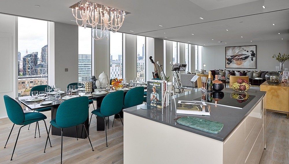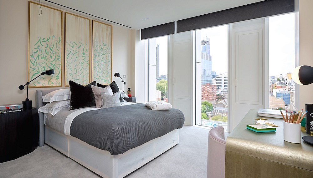 Accessed through a private residents’ entrance where warm tones of tone mix with glass and metal finishes, subtle references of music lead all the way into the elevators, through the corridors, up to the door of each apartment. Inside, space is generous. Ranging from 1-, 2- and 3-bedroom apartments, the structure of a box afford beautiful views of London – Renzo Piano’s stunning Shard skyscraper, St. Paul’s Cathedral and the thorough collection of the Tate Modern, which is just a 4-minute walk away.