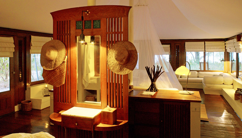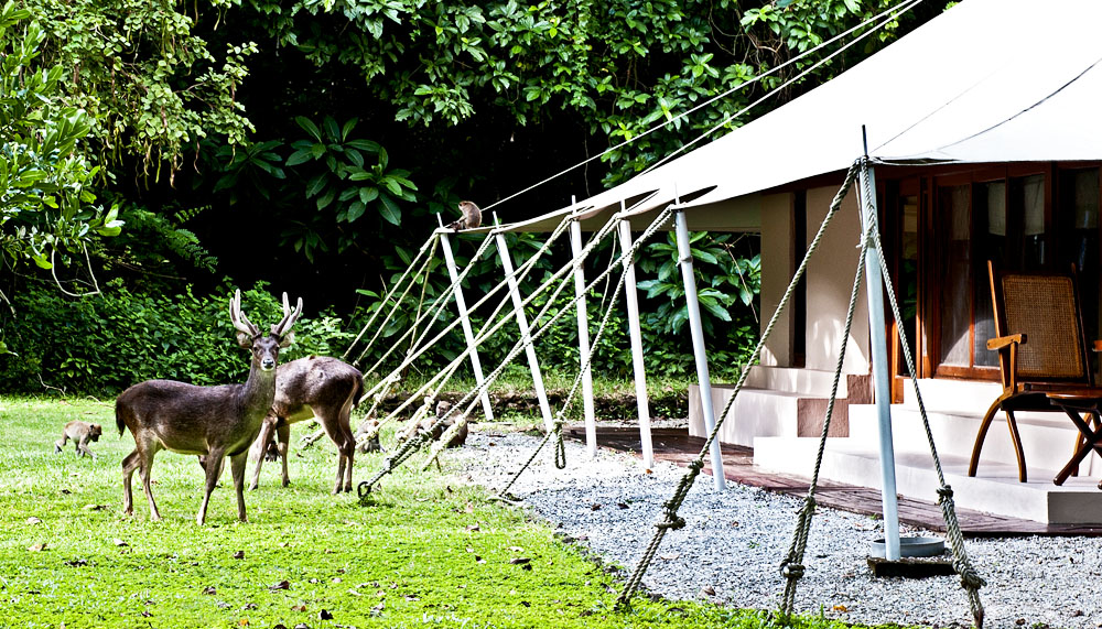 There are no boundaries, no limits here. No walls or hedges separate the tents, and no fences separate the resort from the rest of the island. We are not alone here. We are in the company of the island’s original residents: the shy Rusa deer, wild boars and troops of macaque monkeys. You will hear them, at the edges of your consciousness during a treatment at the Jungle Cove Spa or lounge at the Boardwalk. You will see them, nonchalantly browsing on the lawn and in the branches, as you read in the library or repose at the Music Pavilion. I saw a Rusa pair, deerly in love (at least, it looked that way) taking a long walk on the beach, grazing gently in intervals, as I tucked into the best Indonesian fried rice (with hearty chunks of lobster and the textured crunch of roe) I have ever had at the open-air pavilion that forms The Dining Room and Bar.