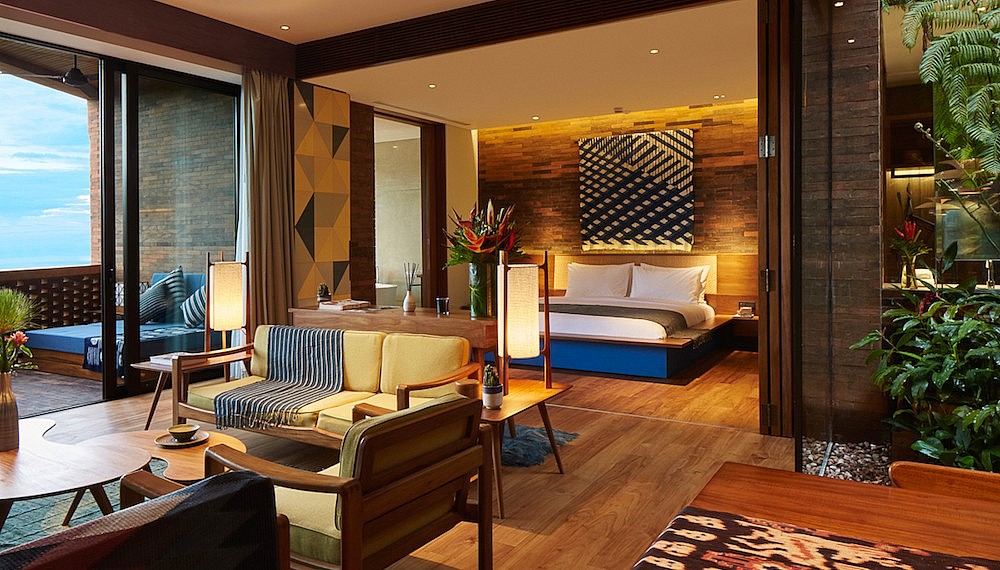 Within this envelope, Matin designed 58 suites with larger living spaces than any other hotel in the area. The luxuriously sized Katamama suite at 320 square metres, offer a private rooftop garden with Jacuzzi, two bedrooms with king size beds and open-plan living and dining area (rates start from IDR18,760,000/ approx RM5,900.)