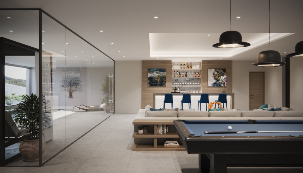 While you’ll find teak decking, a chill-out area and fire pit, and a fully equipped BBQ on the outside of the villa, there’s lots to play with on the inside. Boffi kitchens, a library, a covered terrace, and a lift will make your Mallorcan lifestyle seem even easier than it already is, all complemented by an interior atmosphere that emphasises space, texture, light, and warmth.