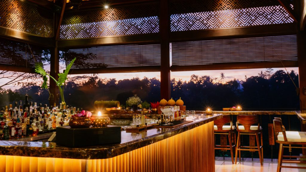 To end the first evening, I’m encouraged to take in the sunset while perched upon a stool that overlooks the valley at Ambar bar. “We set up Ambar because we kept receiving feedback from guests that they really would love to see a bar here at Mandapa,” Tapsir elaborates. “We took these suggestions seriously and realised that Ambar was the perfect way to not only give guests what they wanted but also to make the best use of the space and to add a much-needed social element to Mandapa. Now, we have visitors that come here just for sunset cocktails at Ambar.”