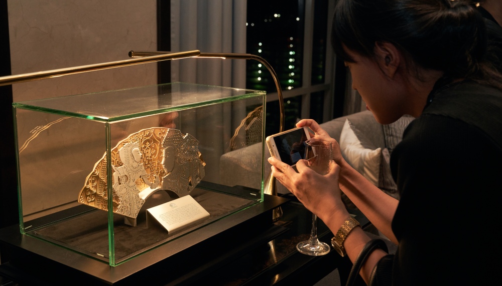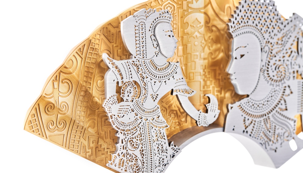 Unveiled at the Royal Suite overlooking another great Malaysian icon, the Petronas Twin Towers, the double-layered fan pays homage to the Kelantanese art of shadow puppetry and storytelling. At the forefront, Seri Rama from the Hikayat Seri Rama gazes lovingly at his wife Siti Dewi, both intricately carved in pewter. In the background, four motifs of Chinese, Indian, Malay and East Malaysian designs are gilded in 24K gold – representing the diversity and multitudes of cultures – making this a truly Malaysian fan.