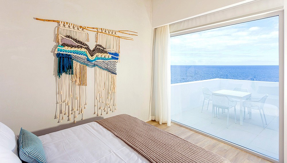 And while the resulting palette is neutral, it’s far from sterile. Natural elements prevail: think rope, driftwood, cotton, volcanic stone, wicker, cotton and living plants. Many of the rooms have direct access to the wide terrace and perfectly situated, heated saltwater pool. Others boast original architectural details and dreamy reading nooks overlooking the sea. The plum is the villa, which comes complete with its own private courtyard equipped with an enormous heated swimming pool.