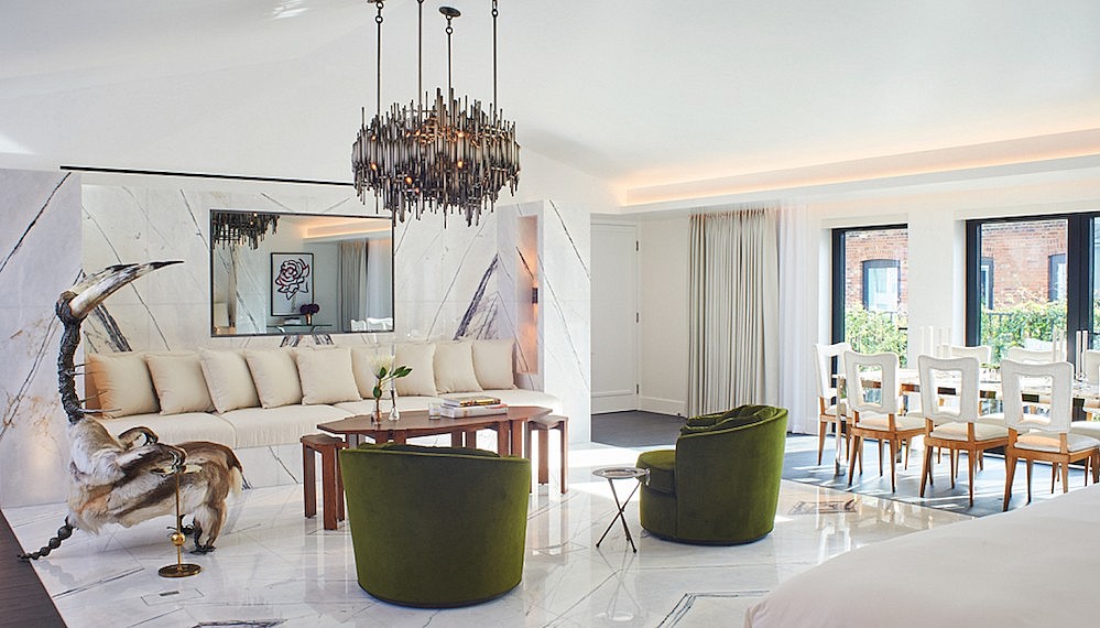 In a stark contrast to the fantastical public spaces, many of the guest rooms are low-key, featuring a mix of white and dark tones offset by colorful avant-garde prints and gorgeous gray marble bathrooms. Others take the surrealist steampunk ambience a step further, with dark-velvet draperies, jewel-tone interiors and claw-foot bathtubs. And even Londoners who don’t plan to spend the night will find stopping by worth a visit — not just to gawk at the endless display of stunning art, but also to indulge at the Mandrake’s exclusive branch of Michelin-starred Hong Kong institution Serge et le Phoque, which serves French fare along with finer takes on British pub classics (think tempura fish and chips).