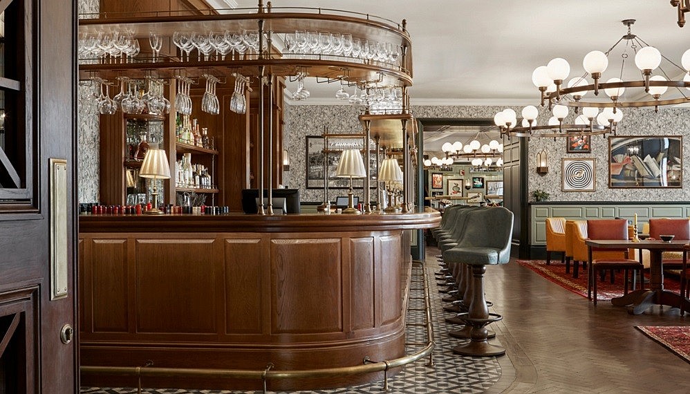 Bespoke touches are everywhere: The ceramic coffee cups stacked in the built-in cupboards are house designs, featuring the University Arms’ facade, and the artwork running throughout the hotel is a carefully curated collection underscoring the overriding sense of place. “We focused on vintage maps, prints of iconic Cambridge landmarks, and portraits of famous Cambridge academics,” Brudnizki notes, though there is also some work by emerging talents in the mix.