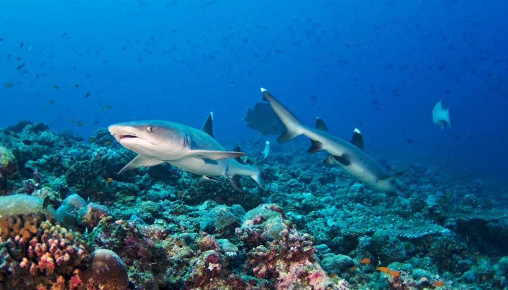 There we were, entranced by the balladic dance of four manta rays at Manta Point, a coral outcrop where the majestic creatures congregate to subscribe to cleaning services provided by tiny fish who rid their clients of parasites. A shark could have swum by and no attention would be paid, so captivated we were.