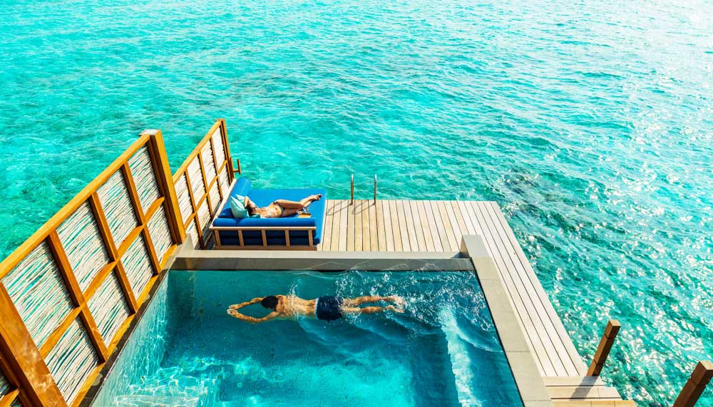I was snorkelling, when suddenly I heard an incessant beep. It was Manta On Call. Treading water, I was told that mantas had been spotted. The Baa Atoll is a manta hotspot, and Hanifaru Bay, which attracts mantas in their hundreds, is only 20 minutes away from the resort. Those interested are handed the Manta On Call phone (in a waterproof case) on check-in, and if the resort’s team of marine biologists spot any mantas nearby, the phone goes off.