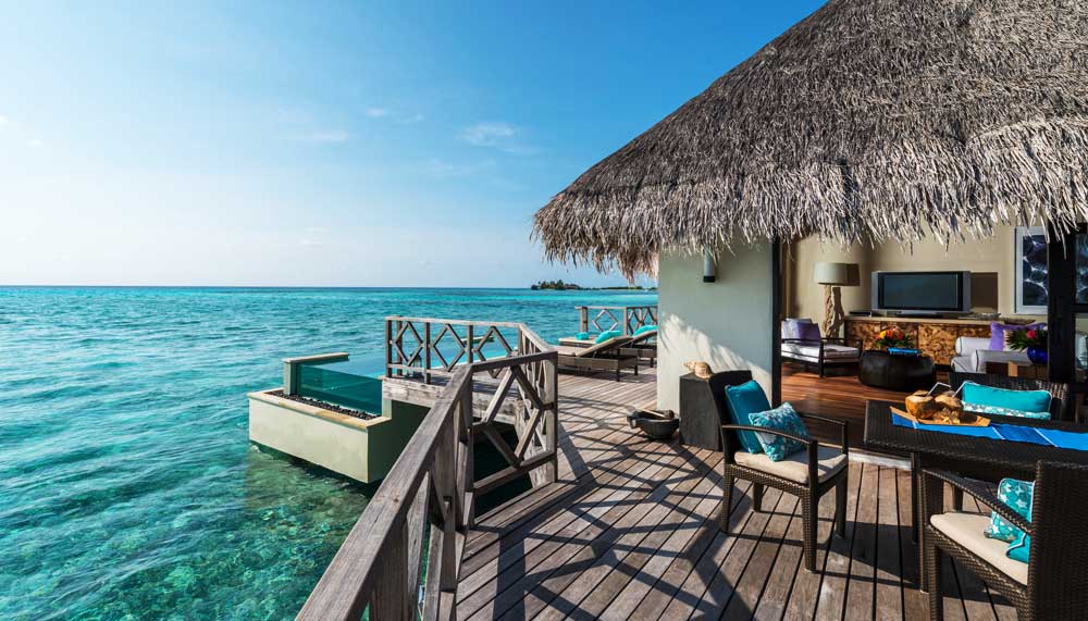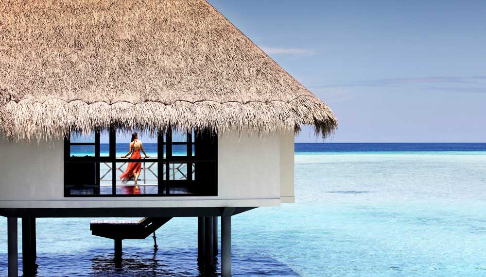 Kuda Huraa is the closer of the two to Malé, the entry point for anyone travelling here. As the speedboat whisking guests arrives, the resort reveals itself, a narrow spit of sand terminating in a corridor of villas suspended over azure waters. Here are 96 beach and water accommodations constructed by local craftsmen using local materials and techniques. Kuda Huraa feels cosy, almost village-like in atmosphere, though few villages can boast of such lavish amenities and surroundings.