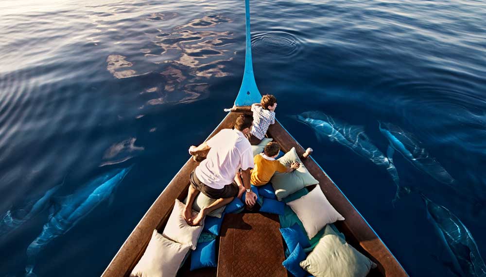 The flat waters are not just perfect for diving and snorkelling, but also watersports. Paddleboarding, parasailing, jet skiing, dolphin watching, the vertical thrills of water jet-packing and even surfing (Kuda Huraa hosts the annual Four Seasons Maldives Surfing Champions Trophy). To unwind, there is paddleboard yoga (less precarious than it sounds) and the signature Healing Hands treatment at the Island Spa. For sustenance, there is the tranquil Reef Club, the fresh Kandu Grill and superlative Indian cuisine at Baraabaru.