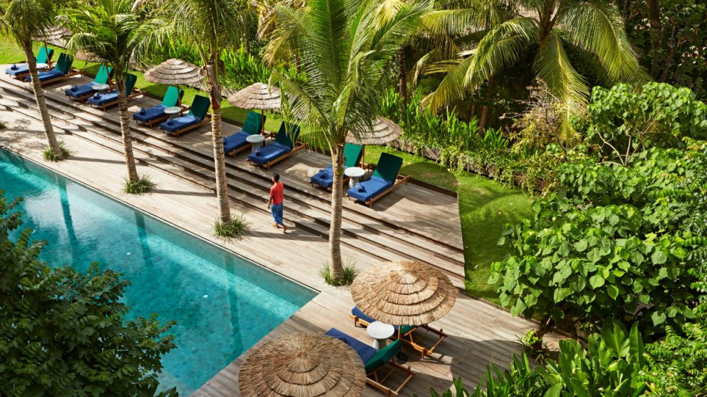 Here at Potato Head, the track is free spirited and the reverb is sustainability. This creative village is the result of combined energies; Potato Head owner and CEO Ronald Akili, architect Andra Matin (who designed the original Katamama) and Rem Koolhaas’ OMA design studio (the firm behind the Guggenheim, Taipei’s Performing Arts Centre and Prada’s Spring/Summer 2022 show). Here in this village known as Desa Potato Head, a uber-hip co-working space called Studio Eksotika doubles up as a library, an exhibition space and plaza hosts cultural events, and guests are provided an entire programme dedicated to Potato Head’s ethos of Good Times, Do Good. From energy activations and sunrise meditations to sustainability workshops, the overarching sense is of rebalancing and regeneration.