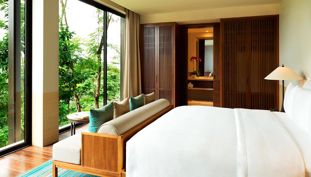 My buggy dropped me off in front of a discreet wooden door set into a tall wall, but that was where the deception ended. Entering the door, I walked right onto the pool deck of Residence 14, my home for the next two nights. This level of the villa has been engineered to give maximum impact; its three wings flank the left and right, so the first thing one sees upon entering is the infinity pool overlooking the rest of the resort dotting the forest below and the Andaman sea beyond. Because the property is located within a national park, this tableau is promised for the foreseeable future – no further developments have been planned that could ruin the surrounding natural beauty.