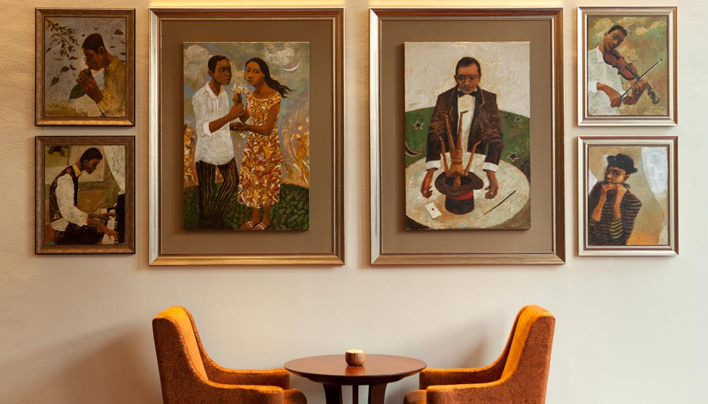 A thorough experience of this collection is best derived from the hotel’s Art Concierge tour, which provides a walkthrough of these artistic highlights, with an attendant historical-cultural explanation of the nation. Sometimes, the artistic vibe simply sweeps through for instance, while nursing signature cocktails on lazy tropical afternoons at the Writers Bar. Here, Anthony Palomo’s six-installation ‘Serenade’ details Filipino-styled courtship with acrylic on canvas, offering romantic repose, an historical feeling and a genuine sense of place.