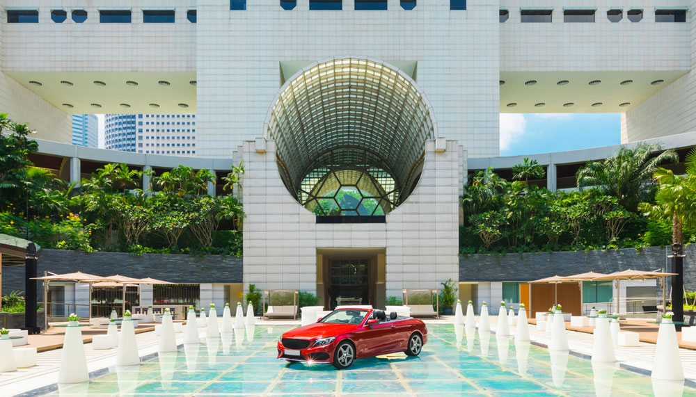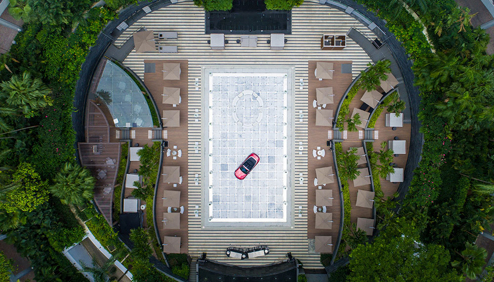Each plexiglass cube is capable of supporting weights up to 800 kilograms, and can be arranged in various formations, from a T shape, to a rectangle or square. This strength and flexibility opens up countless possibilities for events: imagine a showcase for supercars with the vehicles parked over the pool, a lit runway that stretches across the length of the water or a dance party with a spectacular over-water dance floor that fits 200. A newly constructed entrance opens out onto Raffles Avenue, so that guests – and supercars – can make a grand entrance right onto the pool without going through the hotel.