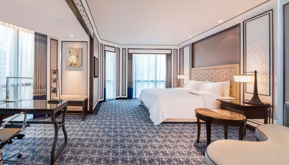 As a respectful nod to Princess Valaya’s legacy and the location’s storied background, the 374-room Athenee Hotel bears classic elements throughout, recreating through the use of design tropes from chess and books – favoured pastimes of the princess – a style of living from a bygone era. Expect palatial interiors in the Vimarn Siam suite, a modern distillation of King Chulalongkorn (Rama V)’s summer abode. At 190 square metres, the two-bedroom suite recalls the 19th century, highlighting murals, carvings, and materials popular during that era. The space also features a dining table that comfortably seats 10.