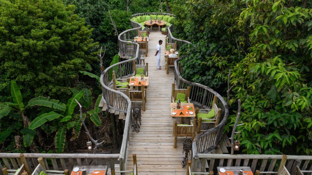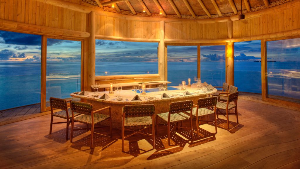 Flying Sauces, a breathtaking new private dining experience, begins with a 200m zipline course – a Maldives first – to a dining “tower” created high in the treetops. Chef Rasal presents exquisite food as the sun rises (or sets) while the trees dance to soft sea breezes. When we were there, Chef Julien Royer of Singapore’s three-Michelin-starred restaurant, Odette, had just finished his stint.
