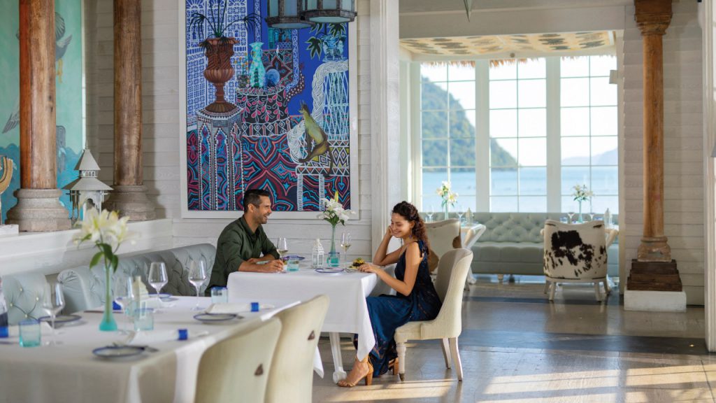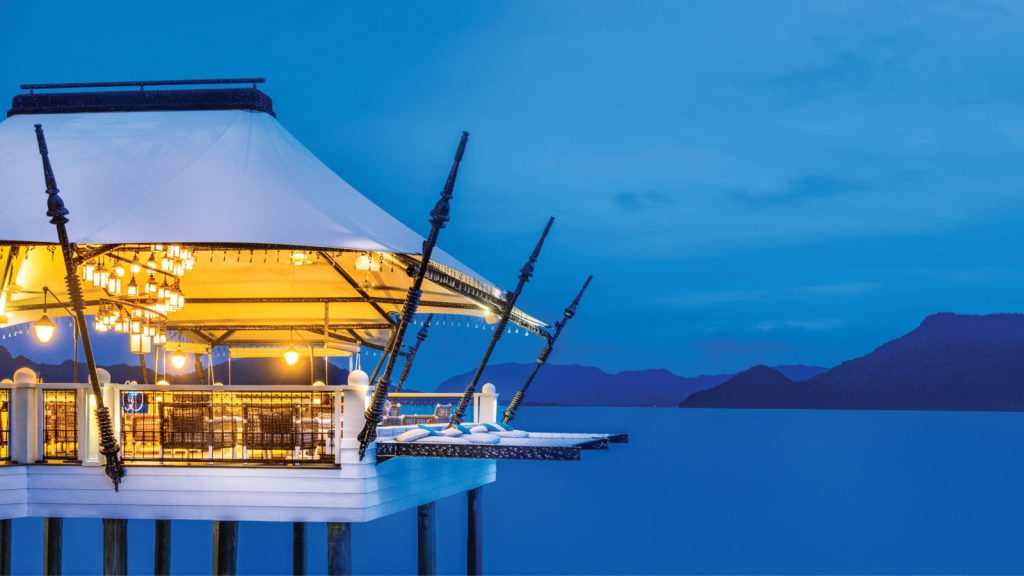 Langkawi might be a laid-back island, but there’s nothing remotely laid-back at the St. Regis Langkawi’s Royal Sunset Villa. Guests have the run of a glorious four-bedroom mansion over water that features a glass floor entryway offering azure-tinges of the calm waters below. It’s an apt location to bring a gang of besties or a gaggle of relatives. The villa, along with the one-bedroom variations next door, are configured with steps and ladders from which one can dive into the sea. So yes, the Andaman Sea is basically your swimming pool – if you’re bored of the actual pool on the villa’s outdoor deck, that is. Accommodations at the villas include signature St. Regis touches: old world design sensibilities matched with modern day technology. The Wi-Fi is super fast, while the in-room sound system will make budding DJs break into grins.