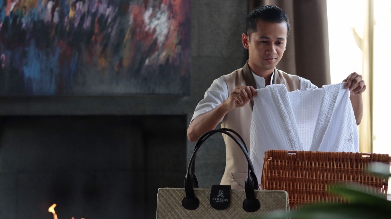 Tea is also served with a side of a masterclass in Packing in Style by Assistant Head Butler, Nur Fazidah, who instructed us on the finer points of getting ready for the beach with all essentials snugly packed in the mengkuang (or pandanus) leaf-woven bag bearing the St. Regis marque on its clasp. St. Regis’ Butler service remains unparalleled and extends to bringing tea and coffee to your room, ensuring your clothing items are pressed and ready for your event, and, of course, being ever ready to do all the packing for you.