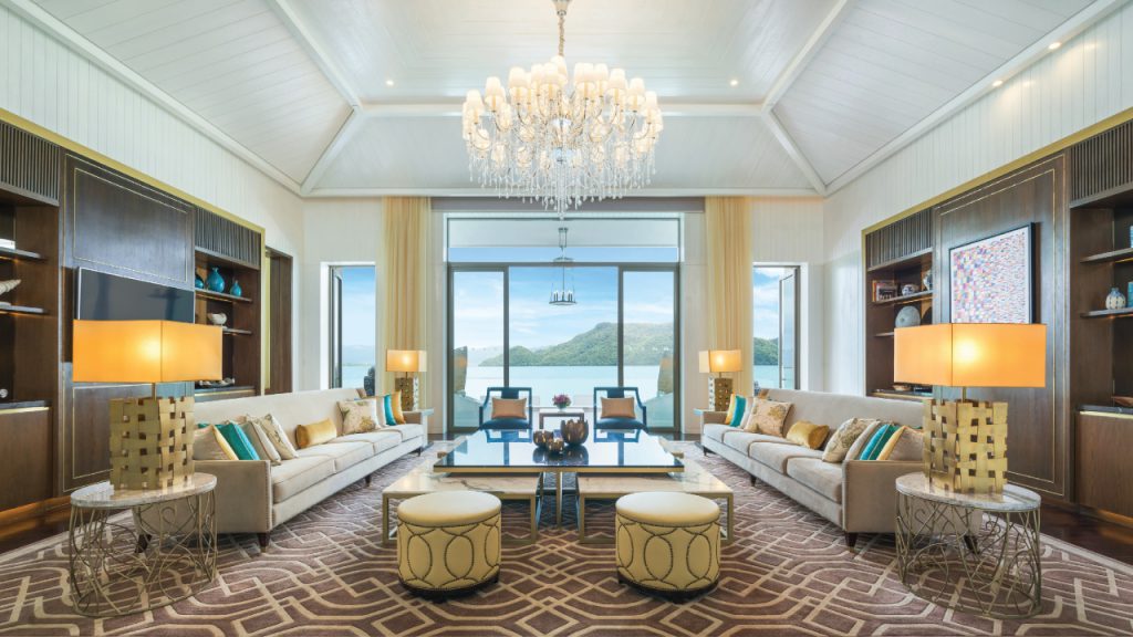 Spanning over 700 square meters, the villa’s four rooms open with private terraces for each room, an infinity pool that overlooks the tranquil waters of the Andaman Sea and an elegant living area that features a tempered glass-flooring panel to enjoy an immersive underwater effect. Dining in the Sunset Royal can be a curated affair with award-winning chefs specially crafting an in-villa dining experience.