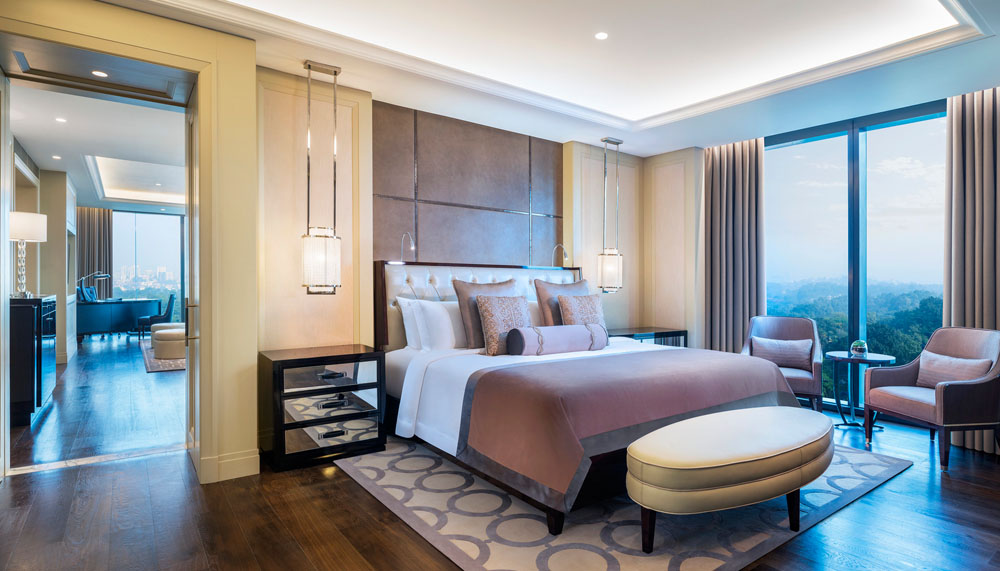 Perhaps the most conversation-starting adornments at the St. Regis Shanghai are the dazzling cityscape views from atop the 66-storey building. As with all St. Regis properties, guests have access to the hotel’s butlers, all of whom are trained in the precise art of packing and unpacking suitcases.