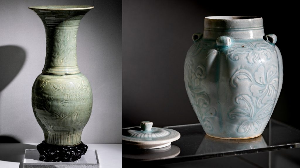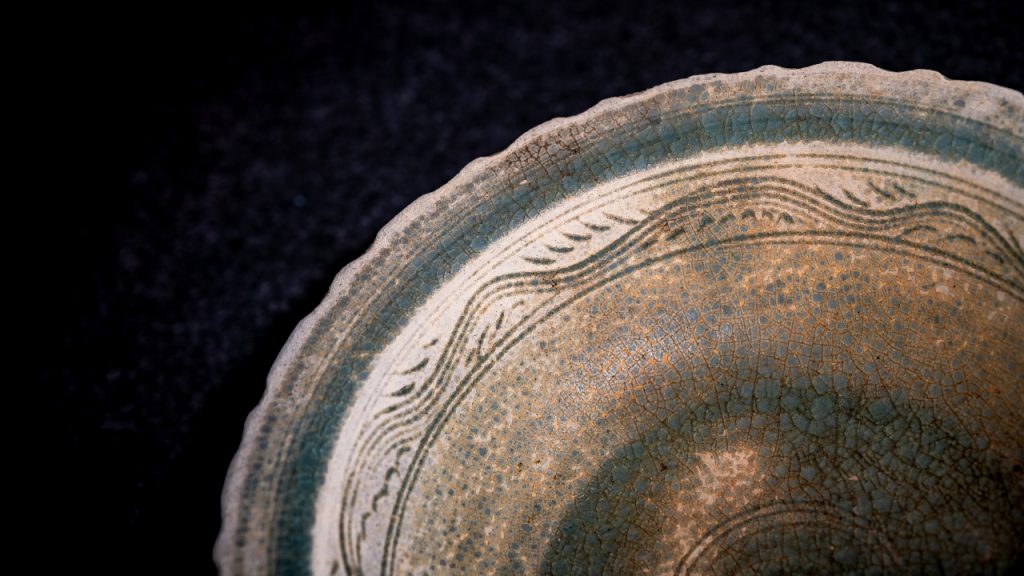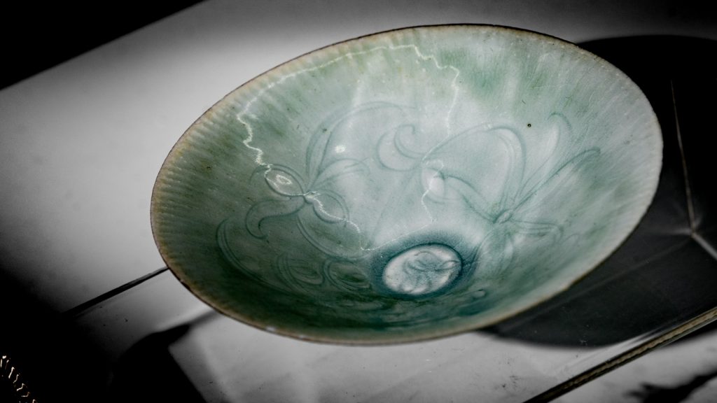In this space, the vast amount of international trade – half a millennia ago – is observed through the displays of green porcelain which got its export name of celadon, a European term used to describe the green ware from China.