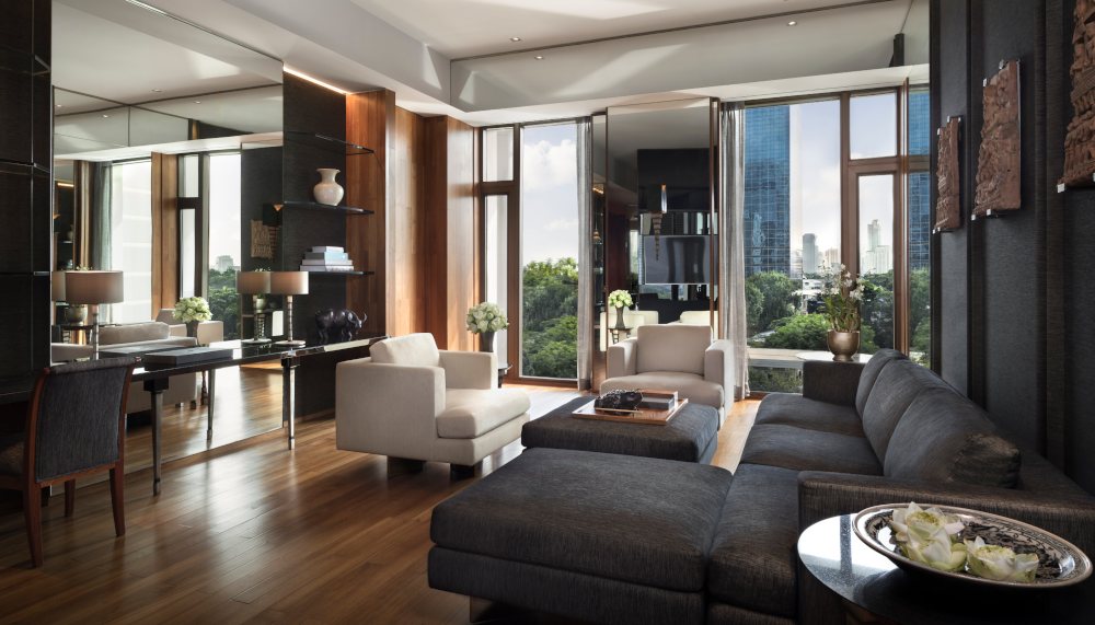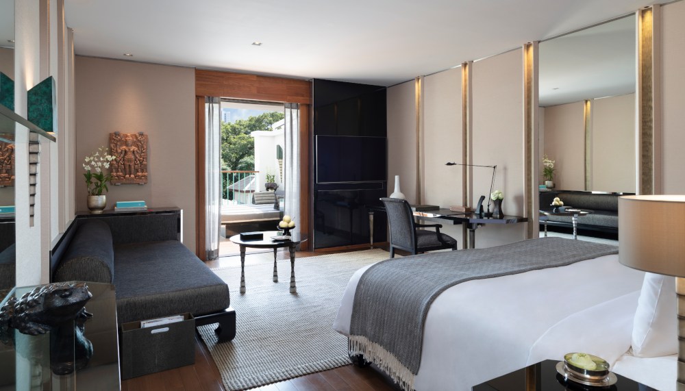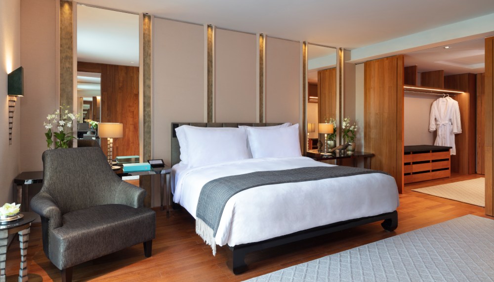 The Sukhothai Bangkok’s rooms are known for being precise renditions of classic Thai interiors with sophisticated modern accents. The former is composed of opulent golden wooden furnishings, one of the hotel’s best-known features. At their recently launched Club Wing, it’s more a case of the latter. The hotel’s latest rooms and suites brandish a decidedly more masculine personality with a predominance of grey and black tones; wooden flooring and ample use of mirrors in both living spaces and bathrooms.