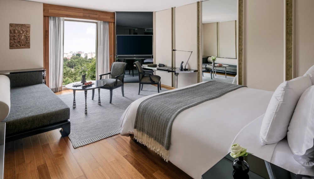 The result? Sleek and contemporary accommodations. Rooms and suites feature 400-thread count bedding; Bottega Veneta bathroom amenities; Harman Kardon audio systems; Nespresso machines; personal safes large enough to store laptop computers; and Saro lotus tea, which was blended exclusively for the hotel.