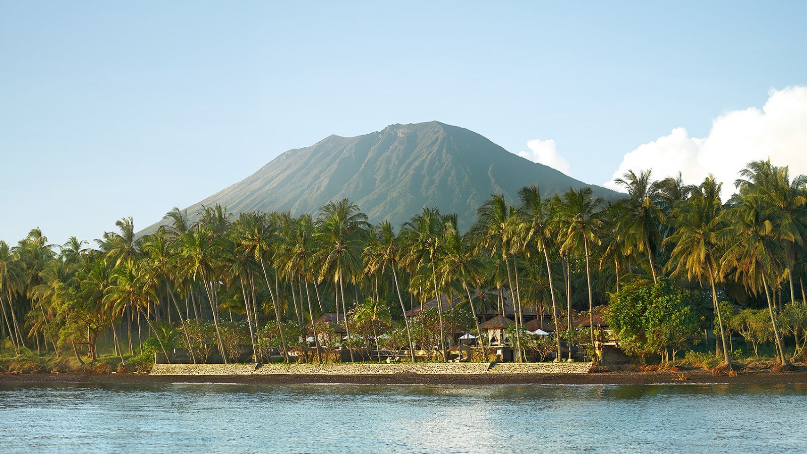 A Royal Balinese dinner at The Tempayan—which is covered with a thatched wantilan roof pavilion—follows the performance, with dishes such as sate lilit, green bean urap sayur salad, and bakwan jagung corn fritters carried in on the heads of kebaya-clad waitresses. The open-air restaurant is also where Singaporean Executive Chef Dean Nor can be found entertaining up to 10 diners with his five-course ‘Omakase at the Tempayan’ menu, during which he demonstrates his skills as both a raconteur and cook. Many of the ingredients that make an appearance are sourced from Indonesia, such as Surabayan edamame and wakame from Nusa Penida, or even closer from his on-site garden at the resort, which produces pomelos, cucumbers and roselle flowers.