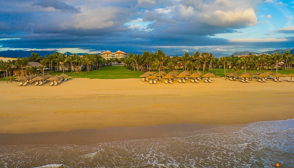 The vision begins from the air. The approach to Cam Ranh airport is spectacular. As the plane descends to the runway at the end of the peninsula, a vast stretch of white sand separated from the mainland by a lagoon comes into view. With sunlight shimmering off the innumerable grains – the pristine beaches of the Arabian Gulf spring to mind – you find yourself thinking, that looks inviting. Then as the car sweeps in the noble courtyard of The Anam, you realise: this is what I saw, calling out to me on the plane.