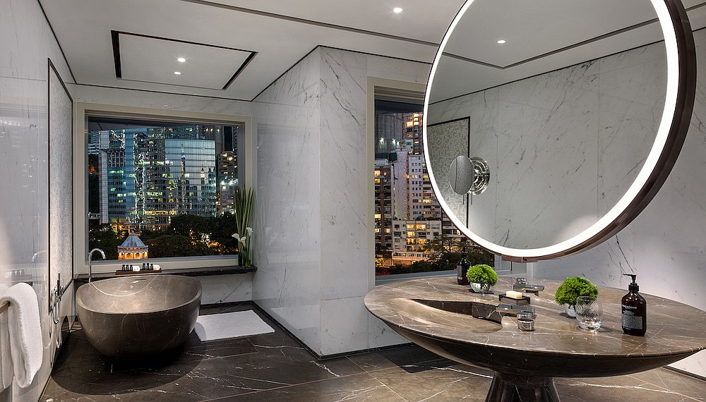 Of its 336 sophisticated suites and guest rooms, you’ll find that the finest private panoramic views of the city are to be enjoyed in The Murray Suite (from HKD51,300/RM26,890) – the largest in the hotel at 225 square metres. An oversized en-suite bathroom, his and hers walk-in wardrobes, separate living and dining areas, a pantry, study, and a fitness zone make for a palatial one-bedroom residence. Meanwhile, tasteful aesthetic touches such as natural stone surfaces, hardwood floors, deep pile plush carpets, fine textiles, and leather upholstery might just prompt you to call your own interior designer to tell them to take note of the details.