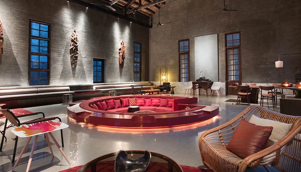 A red circular sunken sofa in the middle of the lobby and an eclectic array of armchairs at different corners provided a dramatic contrast to the ancient stonewalls. It was the perfect past-present embodiment of the Chinese saying “Remember Your Country, Keep your Eyes on the World” that was emblazoned across the building’s exterior.