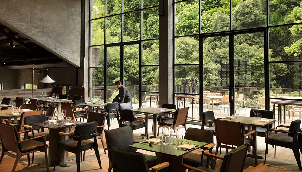 The main building housing the guestrooms is a majestic structure of modern stone and bamboo from the area merging with old masonry to create a karst cave-like architectural statement while perpetuating the sense of straddling time. The minimalist room interiors are enhanced by rustic touches such as criss-crossing ropes on the ceiling of my Garden Townhouse and modern creature comforts like a capacious bathtub big enough for two.