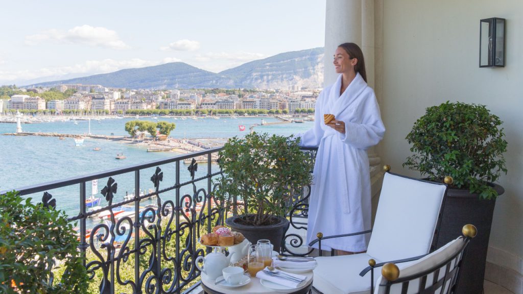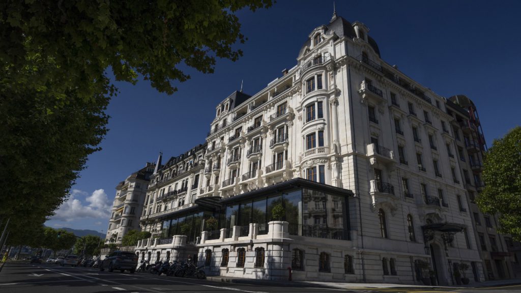 Its externality is almost representative of the city of understated and sober Geneva: a pre-war building, all square corners, cornices, and rows upon neat rows of wrought iron balcony railings. The entrance, too, is unassuming – off to the side, with a modest awning and understated signage that proclaims that this is, indeed, The Woodward. The consummately professional doormen are the first clue that The Woodward is one of Geneva’s most exclusive lodgings. It is, in fact, the latest from the Oetker Collection, one of the interests of the famous German family behind also Le Bristol in Paris, The Lanesborough in London – not to mention frozen pizzas. The Woodward opened in September 2021, after five years of development. Despite its sizable six above-ground storeys, it has only 26 guest rooms. In a first for the city, every single one is a suite, from the relatively modest Junior Suite at 55sqm to the 303sqm Royal Suite – which includes a dining room with banquet-worthy table.