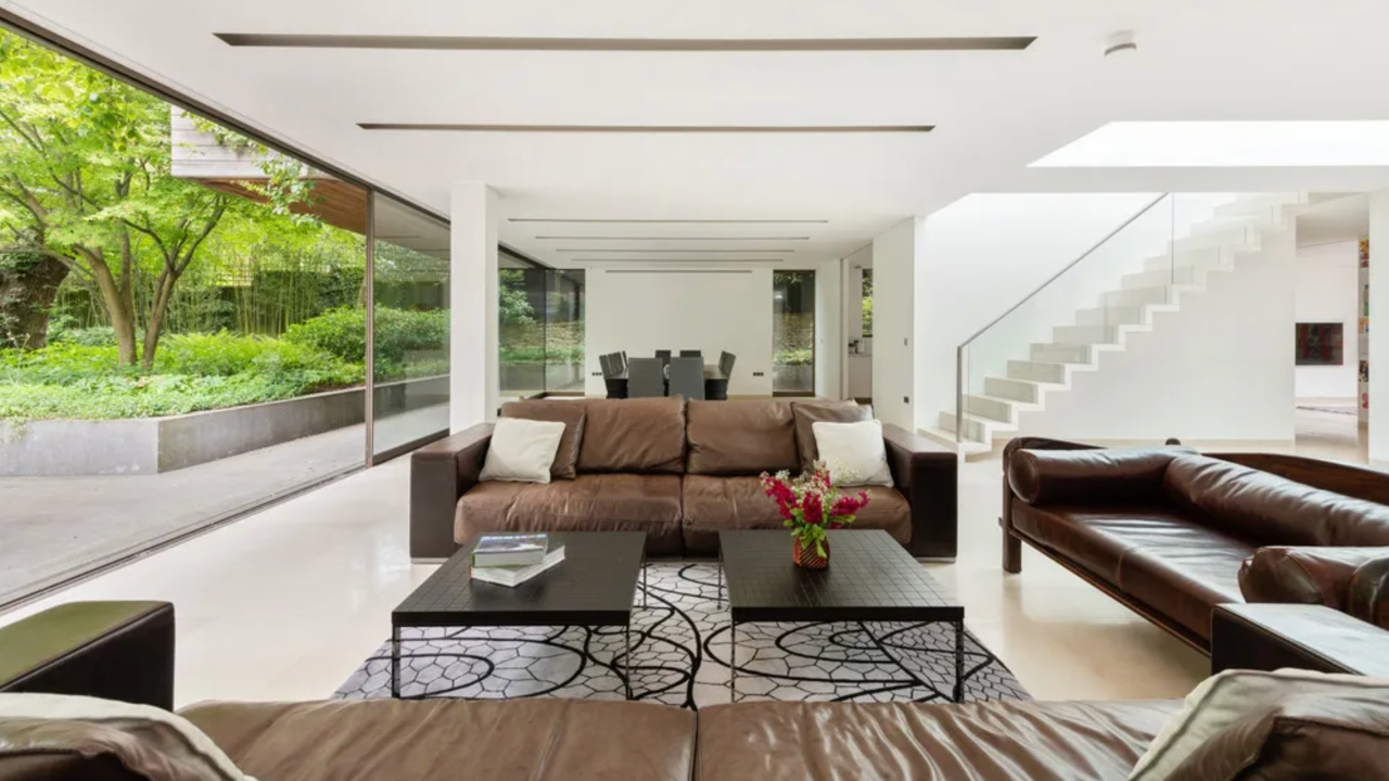 Built almost two decades ago, in 2005, and known as The Glass House, the home was originally commissioned by an elderly couple. The present owners, who are avid art collectors, bought the bespoke property a few years later, in 2009, and put the place through a down-to-the-studs renovation. They tapped U.K.-based Glenn Howells Architects to take on the massive remodel. The firm is best known for its commercial projects and most famously worked on revamping the German Gymnasium building in Kings Cross.
