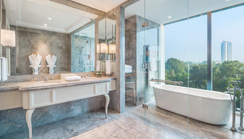 Upstairs, guests in the hotel’s 208 supremely spacious rooms and suites have access to butlers, all of whom have undergone pretty impressive training, resulting in skills such as anticipating guests’ needs. Case in point: a butler who knows exactly what to do when helping guests unpack, prepared for any eventualities – even leaked shampoo on a shirt that was swiftly sent to be laundered and pressed.