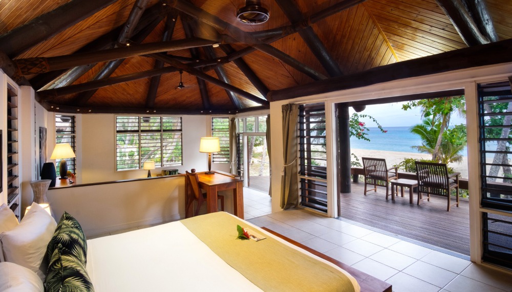 Laid out like a string of pearls along the private beach are 18 bungalows, each hidden among lush foliage. Known as bure, each bungalow blends into its lush environment with its dark wood and cream walls. At this level of hospitality, one might expect ultra-modernity in the interior – full of sleek luxurious minimalism. Half of that equation is definitely there, but the vibe is decidedly more laidback. Yasawa Island Resort does not aspire to the cutting edge, but to the heart and soul of Pacific island life. Fans provide indoor breeze under a tall traditional roof shaped like the keel of a ship, rustling a wonderfully cosy interior with vibrant tropical furnishings. The bed faces the beach, which itself faces northwest – the canvas for a slow watercolour painting of sunrise or a spectacular sunset. With the beach just outside and a hammock to enjoy the view with (preferably with a glass of Champagne), this could be Heaven.