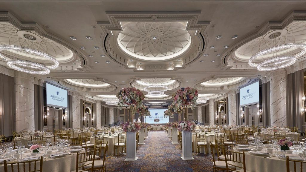 If you would prefer to stay within city limits so that your guests may also enjoy its myriad retail, entertainment and F&B delights of the bustling Kuala Lumpur, JW Marriott is the prime destination for a sophisticated wedding event. The happening hotel is conveniently located in the heart of the city, and offers intuitive and flawless service to ensure that you enjoy your special day. Couples may choose between the hugely impressive Mayang Sari ballroom, or the contemporary and intimate Bayu Hall – accommodating up to 360 guests and offering an alfresco pool areas as well as use of the cabana rooms around it. The wedding feast is also a proud feature of JW Marriott’s events, with a range of top-tier Malay and Chinese cuisines to sample from. And for the after-party – just mosey down to the JW Firehouse bar for celebratory drinks in this swish gentlemen’s lounge. This wedding package starts at RM2,488 for a table of 10.