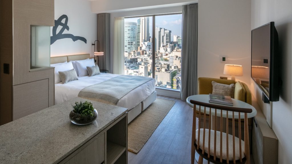 Bernerd also draws local inspiration for the Zentis’ accommodations which range from 270-square-foot studio rooms (from ¥18,300 about RM720) to 615-square-foot suites (from ¥41,040 or about RM1,615). “For the guest rooms we saw the more sustainable room dimensions as an opportunity to do something different. The guestrooms were imagined as a traditional Japanese bento box, interlocking layouts were devised to optimise on the limited floor plate and create a functional yet inviting sanctuary for guests.”
