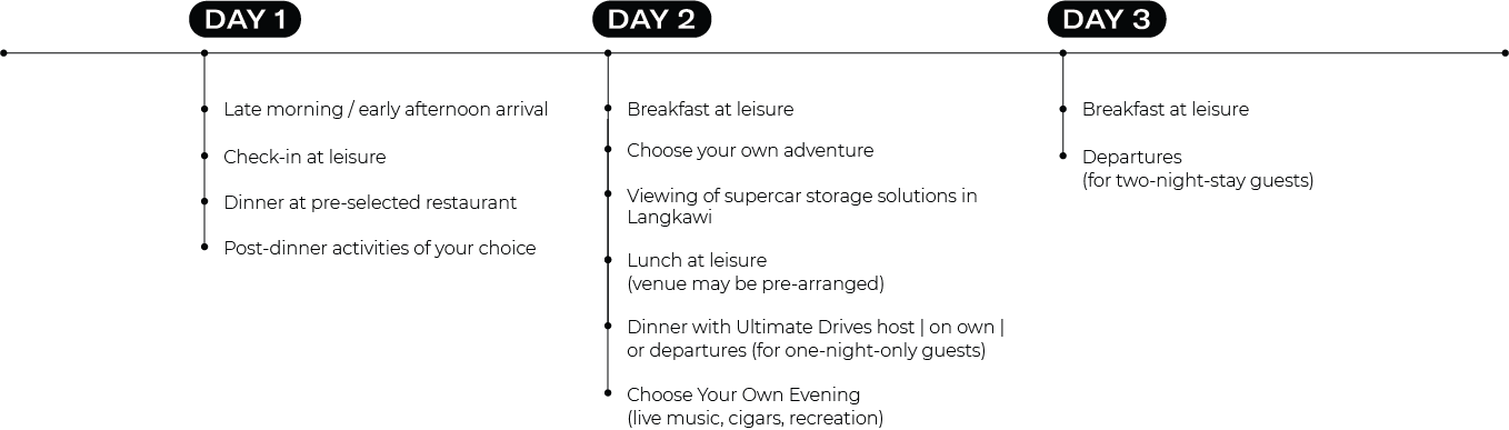 Purchase and fulfilment of the Ultimate Drives Langkawi experience, managed by Robb Report malaysia, is subject to best availability and includes blackout dates.